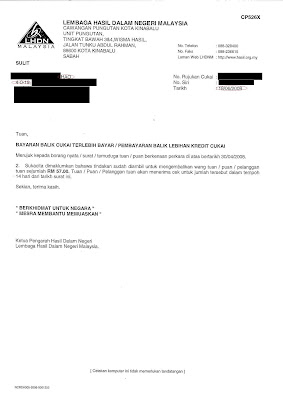 This govt agency is really damn efficient when it comes to collecting taxes from us. I guess no other govt agency is much efficient than them… I am guessing that this investing gation is not just any random selection, but is because of my tax rebate of RM57 when I bought my laptop. Both tax rebate & proof submission letter both dated the same day.
